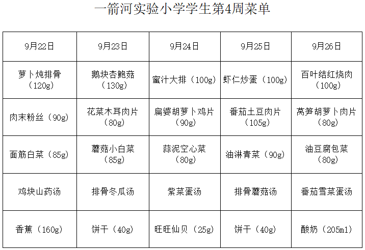 一箭河实验小学2025-2026学年第一学期第4周学生菜单